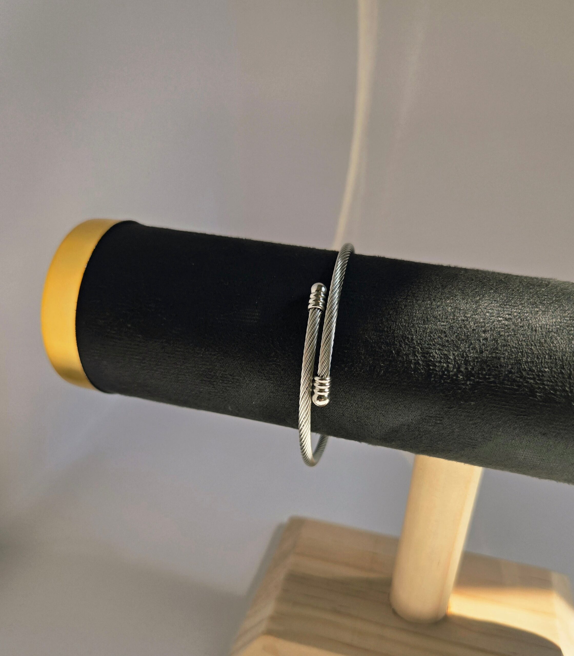 Strength meets simplicity. This bangle blends durability and elegance for a confident, polished look. Adjustable to fit comfortably while adding subtle sophistication to your wrist stack.