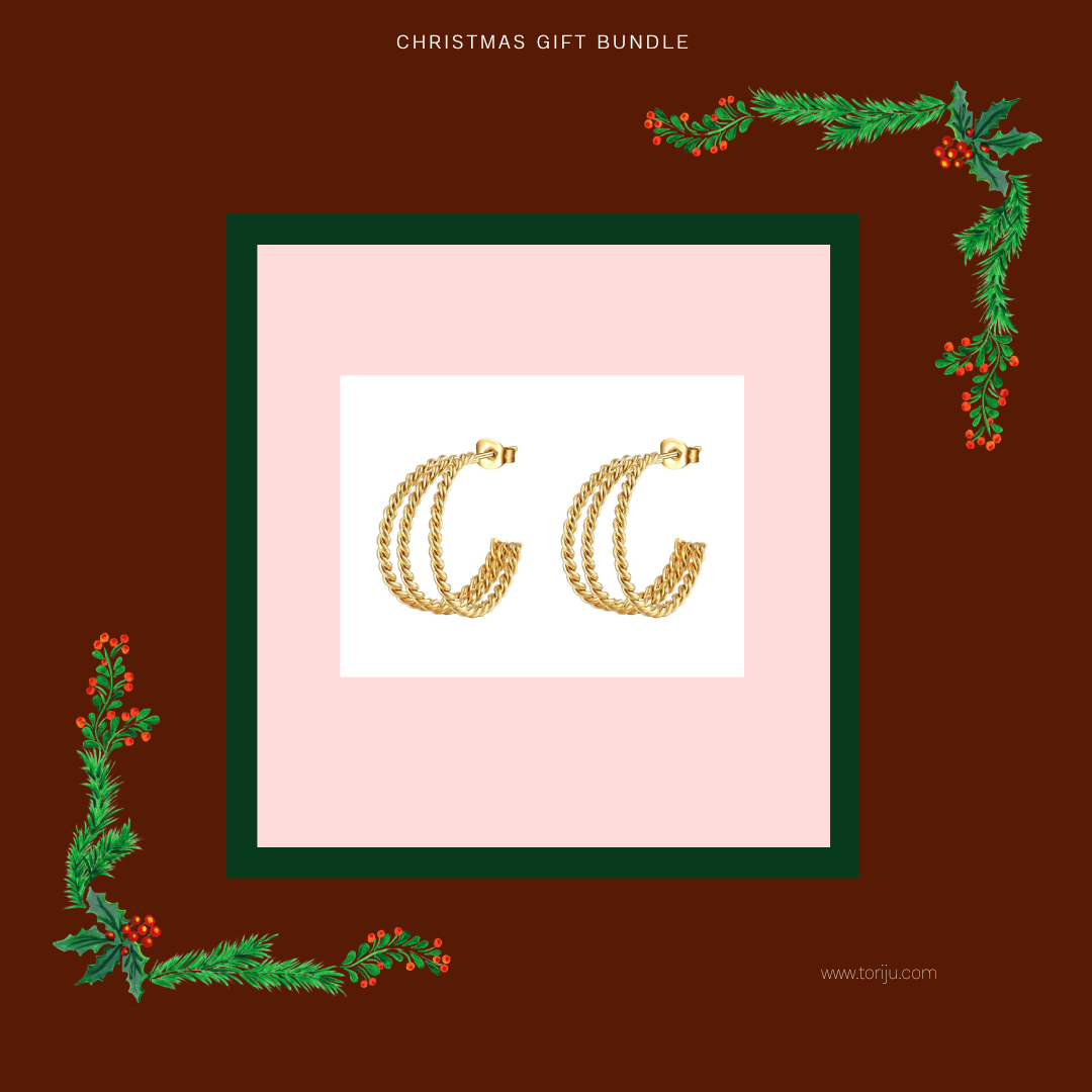 Bold. Timeless. Unapologetically chic — the Chain Set Gift Bundle is made to shine this season. Featuring the Triple Twist Earrings, Chain Necklace, and Chain Bracelet, this set strikes the perfect balance between modern minimalism and statement elegance. Crafted from 18K gold plated stainless steel, each piece is waterproof, hypoallergenic, and tarnish-free, designed to last through every occasion.